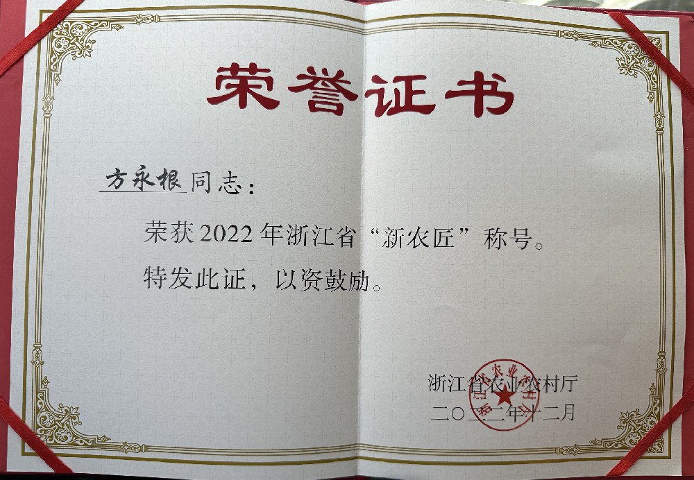 - 榮獲“新農匠”稱號